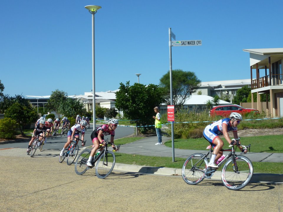 The Sunday road race was also challenging but all the QSM girls were comfortable in the bunch. Some bad luck left Maddi chasing back onto the bunch after a flat tyre, and she finished way down on time. We expect much better things from her next race, since we know what potential she has. Jane and Claire did very well again and finished 19th and 22nd respectively. Natalie once again had muscle cramping problems most of the race (possibly due to low sodium from addison?s disease), and despite racing assertively, she finished way down in 55th spot.