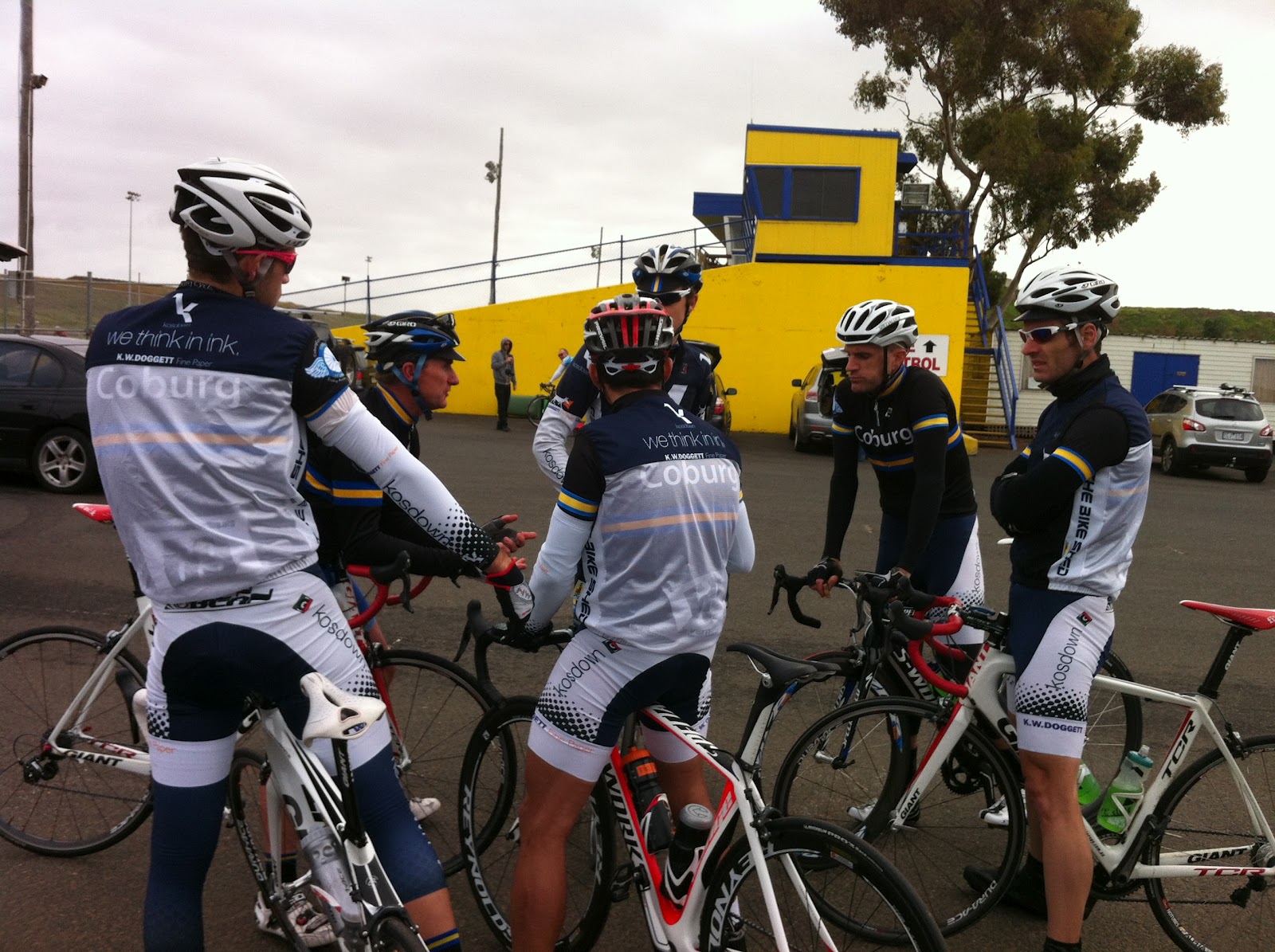 Coburg CC pre race discussion on tactics about bike racing and maintaining good mental health…. “So has everyone else left that Facebook group yet? What a head crack!”
