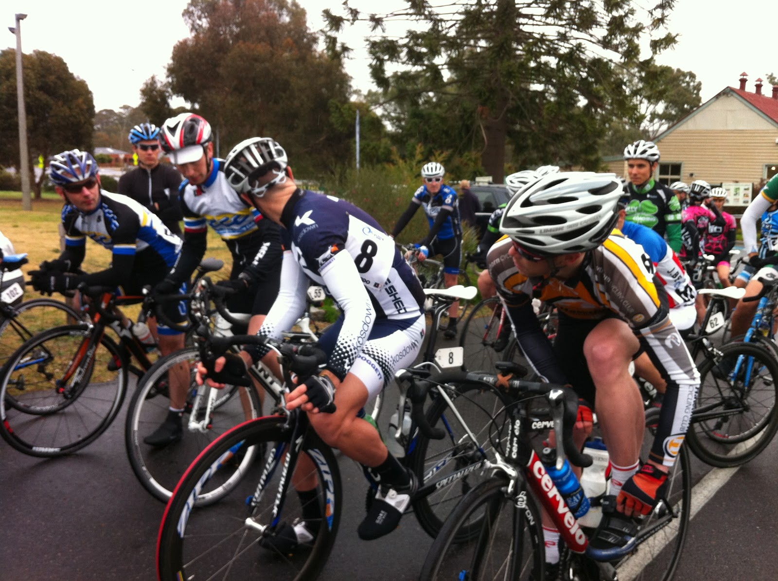 At the start line briefing we were informed of a course change. No dirt. No hill. Out and back and around a loop, twice. Right….. At this point it was bloody cold and we just wanted to get racing. 2km in MMAS2 were content to sit on, I was still cold, it was time to race. Keeping the race report brief, I chased our lead car solo for 68km to the finish. It would have been around 72km but the turn-around point was moved mid-race….. a welcome move as it cut 5kms off the last lap. It screwed up the electronic timing system stats we’d all paid +$5 for in our entry fee. Example 2 – The country elite RR stats list the race as 111km, it was just over 96km. You can’t compare ave speeds for Metros/Country either as everyone in the Metros morning session did the additional 5km on lap 1. Technology is great, until people get involved and change the course…. mid race! In the Metro Elite Men’s event Nathan Elliott (Charter Mason Drapac) took out an impressive win over 15 riders left at the end. The highlight of the day was at the presentations watching Nathan scramble for his phone to take a photo of Team Kosdown boss, Kos Samaras, standing on the podium for his win in MMAS3. This spoke volumes about the respect he has for the sport and those who support him. Metros Full Results Pics: http://jxpphotography.com/2012/05/26/2012-metro-road-championships/ I spoke to Ken Maddern from Castlemaine CC while feasting on the homemade goods on sale at the rego hall. He was keen to hear some feedback on the course. I let him know my thoughts (bring back the 56km loop!) and he took it all on board. There needs to be more of this. Rider consultation. Too often we have to eat what is put in front of us, whilst being told to suck it up and be thankful. I think there is room for riders to work with organisers to get the best of both worlds… this works for cyclocross very, very well.